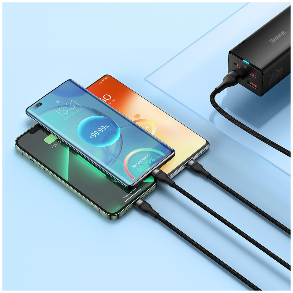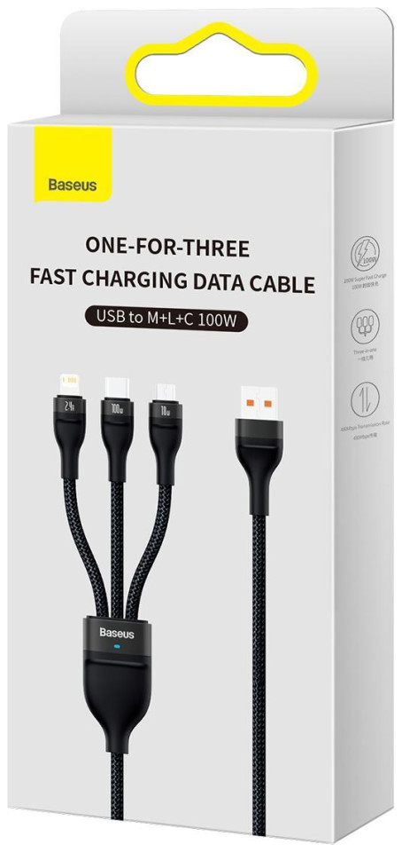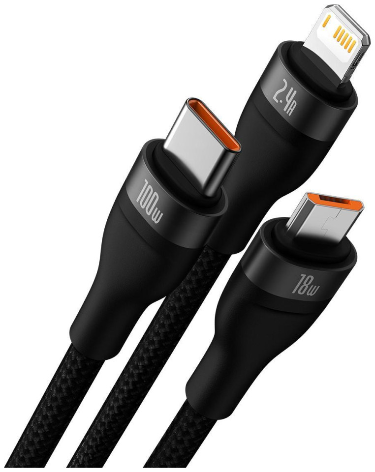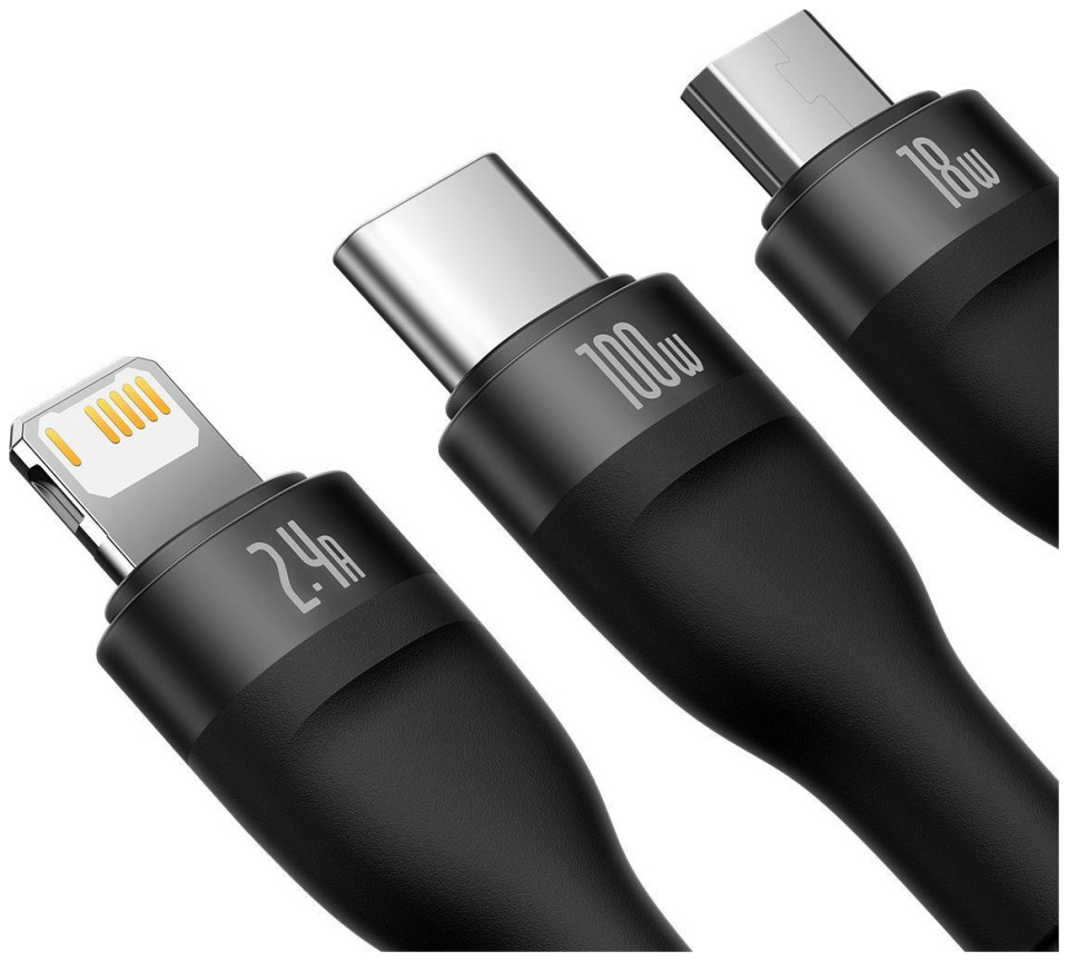 Baseus Flash Series II καλώδιο USB - USB Type C / Lightning / micro USB 100 W 1,2 m μαύρο (CASS030001)