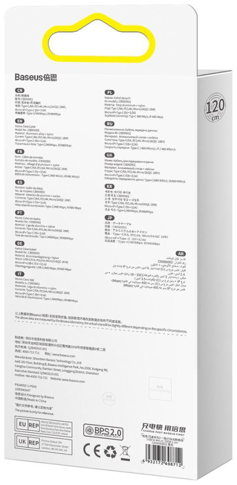 Το καλώδιο με νάιλον πλέξη λυγίζει εύκολα, αλλά αυτό δεν προκαλεί θραύση, ρωγμές ή παραμόρφωση. Οι λεπτομέρειες από κράμα αλουμινίου είναι ανθεκτικές, οι μύτες ταιριάζουν τέλεια στις θύρες.