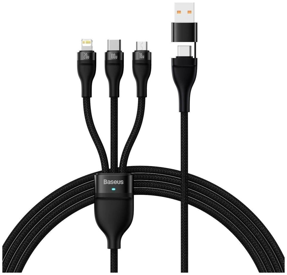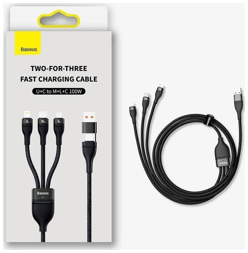 Καλώδιο Baseus Flash Series II USB Type C / USB Type A - USB Type C / Lightning / micro USB 100 W 1,2 m μαύρο Ένα πολυλειτουργικό καλώδιο φόρτισης USB Type C με προσαρμογέα για USB Type A και 3 βύσματα θα πρέπει να βρείτε σε κάθε σπίτι! Είναι ιδανικό για την τροφοδοσία δημοφιλών ηλεκτρονικών συσκευών - τηλέφωνα, λαμπτήρες, μικρούς ανεμιστήρες και άλλες με υποδοχή micro USB, USB Type C και Lightning. Επιλέξτε ένα συμπαγές προϊόν Baseus κατασκευασμένο από υλικά υψηλής ποιότητας. Είναι σχεδιασμένο να λειτουργεί με φορτίο έως 100 W. Χάρη στην προστασία που χρησιμοποιείται, δεν υπερθερμαίνεται και δεν χάνει τις ιδιότητές του. Προδιαγραφή: Μάρκα: Baseus Υλικό: κράμα αλουμινίου + καλώδιο πλεγμένο από νάιλον Μέγιστο φορτίο: έως 100 W (20V/5A) Τύπος υποδοχής: USB Type C / Type A - micro USB + Lightning + USB Type C Γρήγορη φόρτιση: Παράδοση ισχύος, Γρήγορη Φόρτιση, Μήκος καλωδίου Huawei Super Charge: 1,2 m Βασικά χαρακτηριστικά: Συμβατό με γρήγορη φόρτιση. Φόρτιση πολλών συσκευών ταυτόχρονα. Εξαιρετικά γρήγορη φόρτιση τηλεφώνων και φορητών υπολογιστών με ισχύ έως 100 W (20 V / 5 A). Μπορεί να χρησιμοποιηθεί για τη φόρτιση φορητών υπολογιστών με υποδοχή USB Type C, τηλεφώνων και tablet. Υποστηρίζει γρήγορη φόρτιση, συμπεριλαμβανομένων: Παράδοση ρεύματος, Γρήγορη φόρτιση. Περιβλήματα βύσματος αλουμινίου. Η νάιλον πλεξούδα ενισχύει τη δομή του καλωδίου και αποτρέπει την καταστροφή του. Περιλαμβάνεται Velcro για τη στερέωση του καλωδίου. Πολύ στιβαρή κατασκευή Το καλώδιο με νάιλον λυγίζει εύκολα, αλλά αυτό δεν προκαλεί θραύση, ρωγμές ή παραμόρφωση. Οι λεπτομέρειες από κράμα αλουμινίου είναι ανθεκτικές, οι μύτες ταιριάζουν τέλεια στις θύρες Ένα για όλους Ένα τέλειο αξεσουάρ για όλες τις συσκευές με θύρες micro USB, USB Type C και Lightning. Γιατί χρειάζεστε 3 καλώδια όταν ένα είναι αρκετό. Έξυπνο σύστημα διαχείρισης Ρυθμίζει την κατάλληλη τάση σε μια συγκεκριμένη συσκευή, εξασφαλίζοντας βέλτιστη και σταθερή ανανέωση ενέργειας; Ο εξοπλισμός σας θα λάβει ακριβώς όση ηλεκτρική ενέργεια χρειάζεται Βύσματα αλουμινίου Κομψά και ανθεκτικά. Ανθεκτικό στην τριβή και την οξείδωση. Ακόμη και μετά από πολλές συνδέσεις, θα εξακολουθούν να συνδέονται στις θύρες ομαλά και με ασφάλεια.{Plugin Type} Απλή προσθήκη . {Plugin Type} Απλή προσθήκη . {Plugin Type} Απλή προσθήκη . {Plugin Type} Απλή προσθήκη . {Plugin Type} Απλή προσθήκη . {Μήκος καλωδίου} 1,2 m . {Μήκος καλωδίου} 1,2 m . {Μήκος καλωδίου} 1,2 m . {Μήκος καλωδίου} 1,2 m . {Μήκος καλωδίου} 1,2 m . {Χρώμα} Μαύρο. {Χρώμα} Μαύρο. {Χρώμα} Μαύρο. {Χρώμα} Μαύρο. {Χρώμα} Μαύρο. {Χρώμα} Μαύρο. {Χρώμα} Μαύρο. {Χρώμα} Μαύρο. {Χρώμα} Μαύρο. {Χρώμα} Μαύρο. {Cable Type} Αρσενικό - Αρσενικό . {Cable Type} Αρσενικό - Αρσενικό . {Cable Type} Αρσενικό - Αρσενικό . {Cable Type} Αρσενικό - Αρσενικό . {Cable Type} Αρσενικό - Αρσενικό . {Braid} Με πλεξούδα. {Braid} Με πλεξούδα. {Braid} Με πλεξούδα. {Braid} Με πλεξούδα. {Braid} Με πλεξούδα. {Standard} Δεν υπάρχουν δεδομένα . {Standard} Δεν υπάρχουν δεδομένα . {Standard} Δεν υπάρχουν δεδομένα . {Standard} Δεν υπάρχουν δεδομένα . {Standard} Δεν υπάρχουν δεδομένα . {Χρώμα} Μαύρο. {Χρώμα} Μαύρο. {Χρώμα} Μαύρο. {Χρώμα} Μαύρο. {Χρώμα} Μαύρο. {Connector 2} USB-C + microUSB + Lightning . {Connector 2} USB-C + microUSB