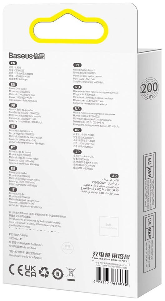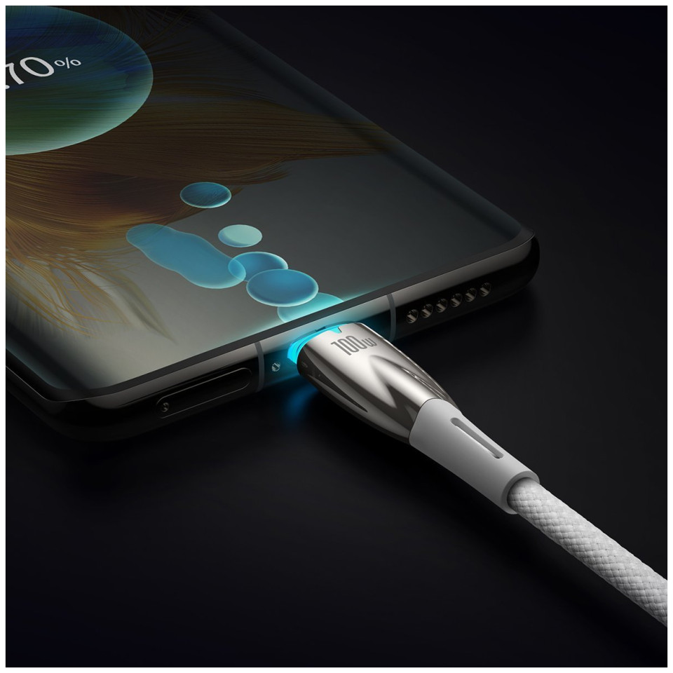 Καλώδιο γρήγορης φόρτισης Baseus Glimmer Series USB-C 480Mb/s PD 100W 2m λευκό Η μεταφορά δεδομένων και η γρήγορη φόρτιση είναι δυνατή χάρη στο καλώδιο USB-A - USB-C της Baseus. Ιδανικές παράμετροι λειτουργίας - ταχύτητα μετάδοσης 480 Mb/s και υποστήριξη για συσκευές έως 100W. Το καλώδιο σάς επιτρέπει να συνδέεστε ελεύθερα στο τροφοδοτικό και να χρησιμοποιείτε το τηλέφωνο κατά τη φόρτιση - χωρίς τον κίνδυνο απροσδόκητου βραχυκυκλώματος. Χάρη στην τεχνολογία που χρησιμοποιείται, το καλώδιο διασφαλίζει την ασφαλή χρήση και την ανθεκτικότητα του υλικού για μεγάλες περιόδους χρήσης Προδιαγραφές: Μάρκα: Baseus