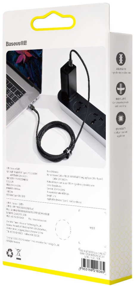 Το καλώδιο Baseus επιτρέπει την εξαιρετικά γρήγορη φόρτιση όλων των φορητών συσκευών με είσοδο USB-C. Είναι κατασκευασμένο από υλικά υψηλής ποιότητας, καθιστώντας το ανθεκτικό σε μικρές μηχανικές βλάβες, σπασίματα και εκδορές. Το καλώδιο υποστηρίζει τεχνολογίες γρήγορης φόρτισης Quick Charge 3.0 και Power Delivery 2.0, που σας επιτρέπει να φορτίζετε γρήγορα τις φορητές συσκευές σας. Υποστηρίζει φόρτιση με ισχύ 100W, η οποία σας επιτρέπει να φορτίζετε πλήρως το Mate Book X Pro σε μόλις 2,5 ώρες και το iPad Pro 12,9 σε 2 ώρες.