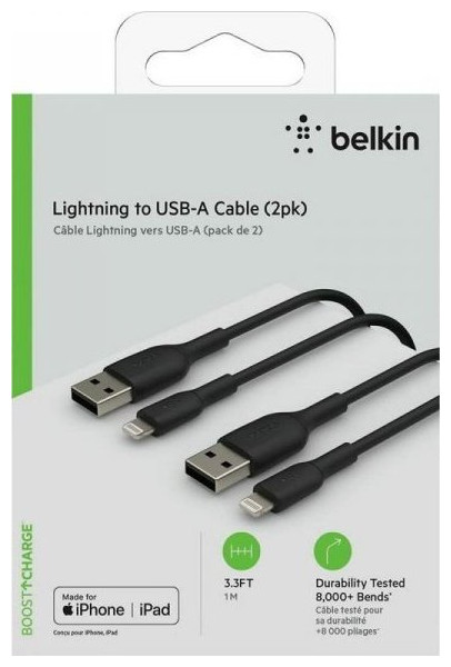Kabel USB Belkin Belkin Lightning to USB-A Cable 1M (2 PK) - Black