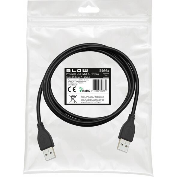 Καλώδιο USB Blow USB-A - USB-A 3 m Μαύρο