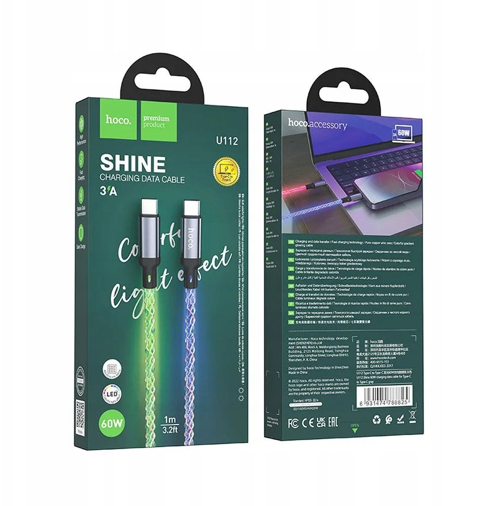 Καλώδιο USB C σε USB C HOCO 3A 60W LED 1 m U112 γκρι