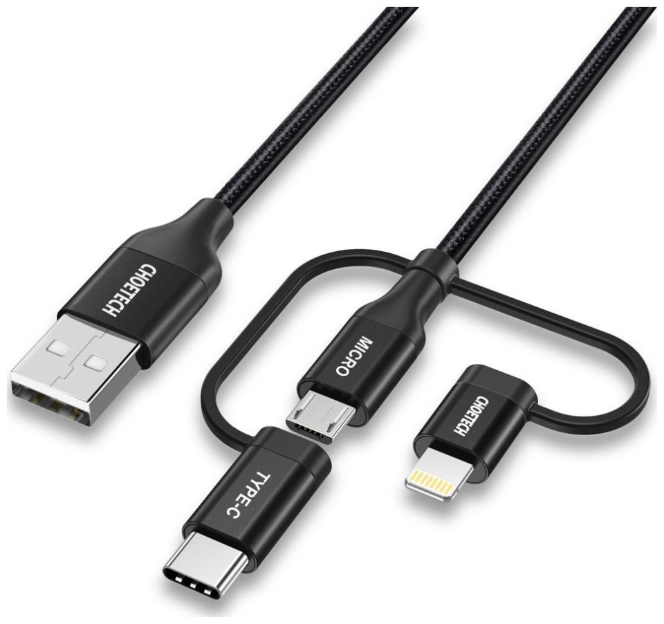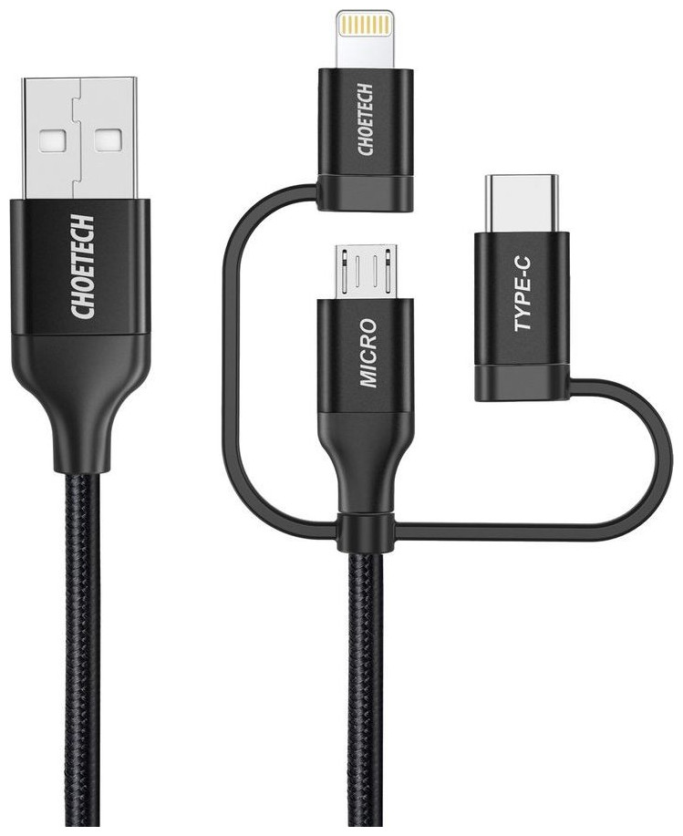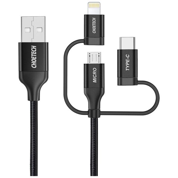 Choetech 3in1 USB MFI Lightning / USB Type C / Καλώδιο micro USB (φόρτιση 3A / μεταφορά δεδομένων 480 Mbps) 1,2 m μαύρο (IP0030-BK)