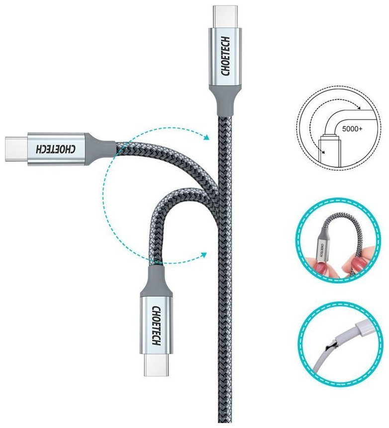Choetech kabel przewód USB Typ C - USB Typ C 5A 100 W Power Delivery 480 Mbps 1,8 m szary (XCC-1002-GY)