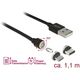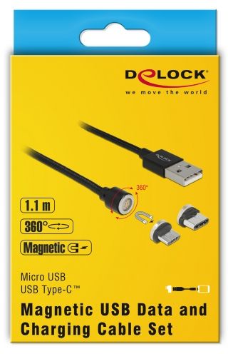 Αυτό το καλώδιο Delock διαθέτει μαγνητική τεχνολογία και σας επιτρέπει να συνδέετε εύκολα και γρήγορα τις συσκευές σας στο τροφοδοτικό ή στον υπολογιστή. Χρησιμοποιώντας τους δύο μαγνητικούς προσαρμογείς που περιλαμβάνονται, μπορείτε να φορτίσετε διάφορες φορητές συσκευές μέσω της διεπαφής Micro USB-B ή USB Type-C™ και να μεταφέρετε δεδομένα. Επιπλέον, το καλώδιο επιτρέπει τη γρήγορη φόρτιση, π.χ. Οι προσαρμογείς έχουν σχεδιαστεί για να παραμένουν στην υποδοχή της συσκευής. Αυτό αποτρέπει τη φθορά της διεπαφής και παρέχει προστασία από τη σκόνη. Το καλώδιο φόρτισης USB μπορεί να συνδεθεί άμεσα στη συσκευή με τη στρογγυλή μαγνητική υποδοχή του. Το καλώδιο, χάρη στο υφασμάτινο κάλυμμα και το μεταλλικό περίβλημα των άκρων, είναι εξαιρετικά ανθεκτικό και ανθεκτικό.