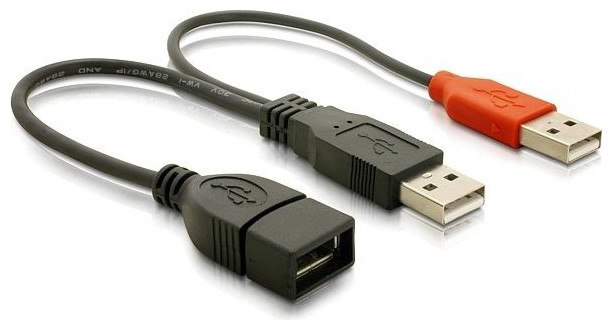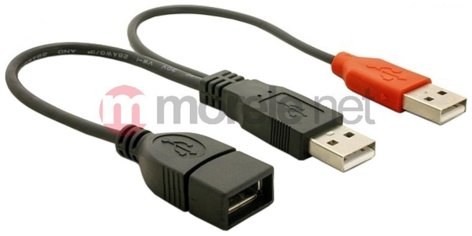 Καλώδιο USB με 2 βύσματα AM, που προορίζεται για συσκευές με αυξημένη κατανάλωση ρεύματος, π.χ. μόντεμ 3G, σαρωτές, θέσεις εξωτερικού δίσκου 22,5 cm Μαύρο βύσμα AM - μετάδοση δεδομένων + τροφοδοτικό Κόκκινο βύσμα AM - τροφοδοτικό