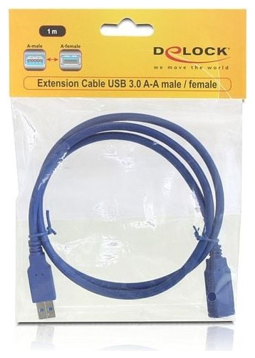 Καλώδιο USB της Delock με υποδοχή αρσενικού-θηλυκού (USB A - USB A) σε μπλε χρώμα.