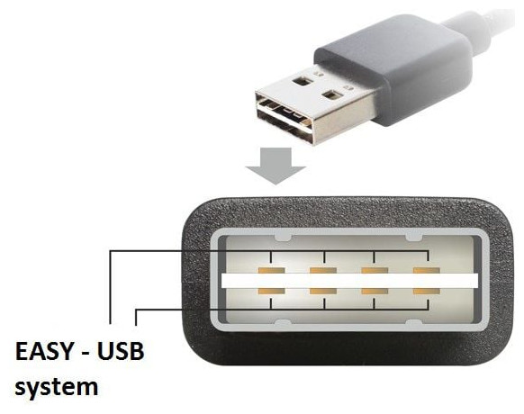 System EASY-USB, umożliwia podpięcie klabla dowolną stroną.
