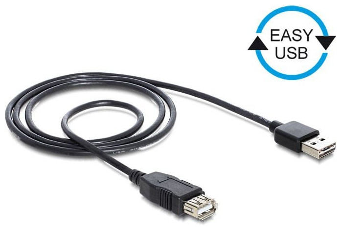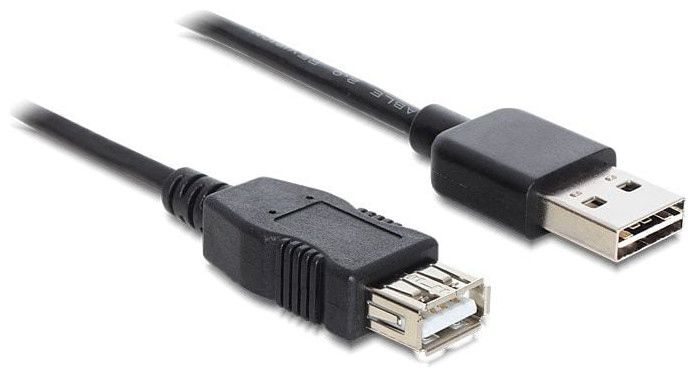 Kabel USB marki Delock, posiadający złącze męsko-żeńskie (USB A - USB A) w kolorze czarnym.