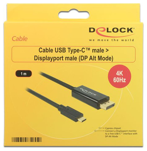 Ten przewód firmy Delock umożliwia podłączanie monitora Displayport do komputera osobistego lub laptopa za pomocą portu USB-C™ lub Thunderbolt™ 3, np. MacBook'a lub Chromebook'a. Złącze musi obsługiwać Tryb alternatywny Displayport.