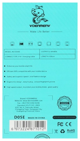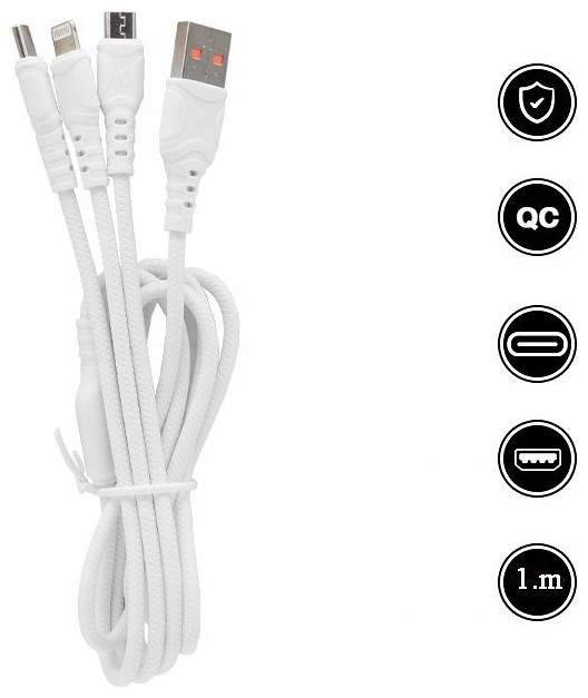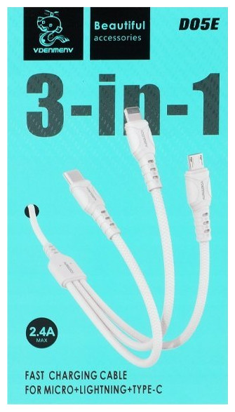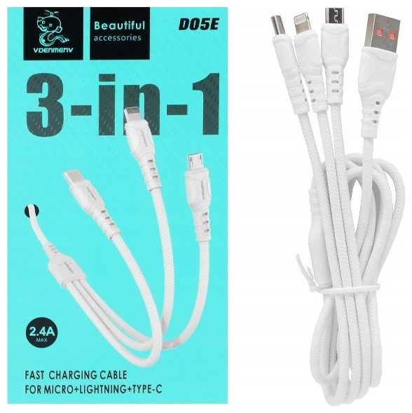 Καλώδιο USB Denmen ΚΑΛΩΔΙΟ USB 3ΣΕ1 DENMEN ΛΕΥΚΟ 1Μ D05E>