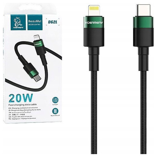 Καλώδιο USB Denmen ΚΑΛΩΔΙΟ USB ΤΥΠ-C ΓΙΑ IPHONE PD USB-C 3,6A DENMEN ΜΑΥΡΟ ΠΛΕΞΟΥΔΑ 1M D62 20W