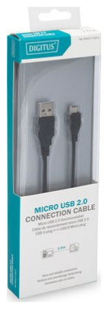 Για σύνδεση εξωτερικών τερματικών συσκευών USB (με υποδοχή Micro B, π.χ. MP3 player, smartphone ή εξωτερικό περίβλημα σκληρού δίσκου) σε κεντρικό υπολογιστή USB (π.χ. υπολογιστής, φορητός υπολογιστής ή διανομέας USB). Ταχύτητα μεταφοράς δεδομένων έως 480 Mbps (High-Speed).{Plugin Type} Απλή προσθήκη . {Χρώμα} Μαύρο. {Τύπος καλωδίου} Αρσενικό - Αρσενικό . {Connector 1} USB-A . {Standard} 2.0 . {Μήκος καλωδίου} 1 m