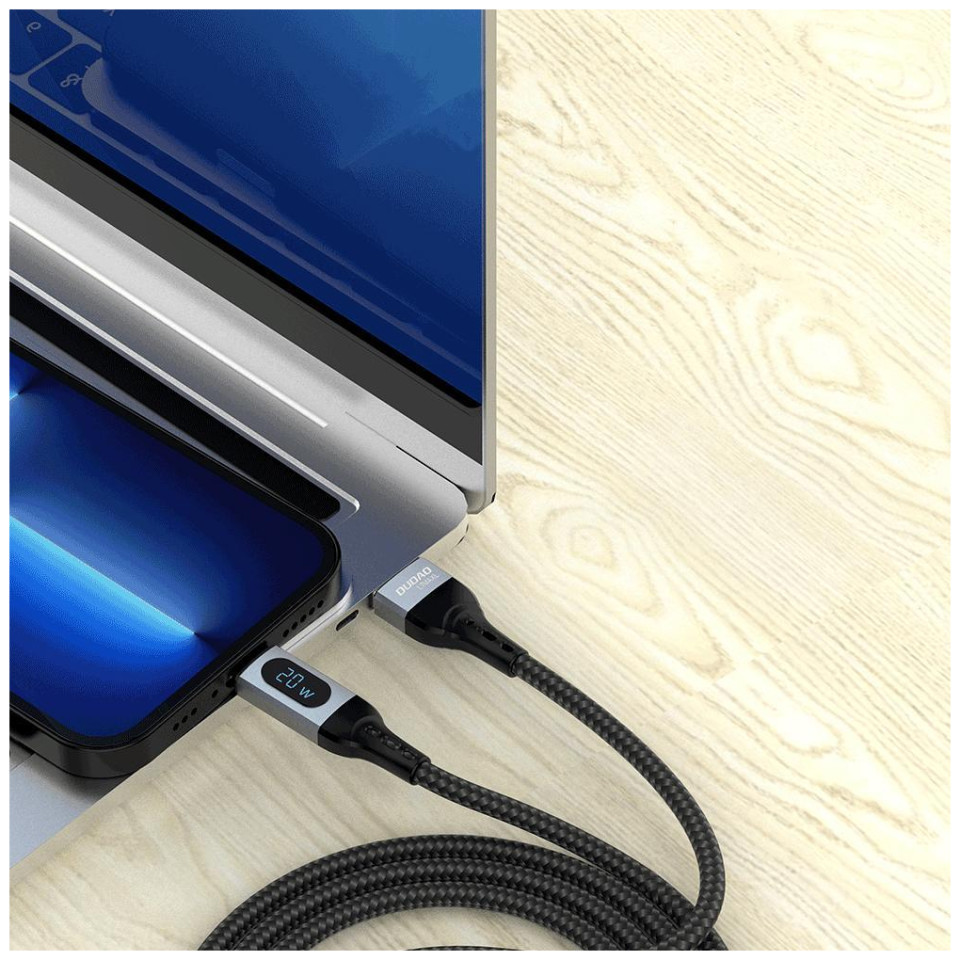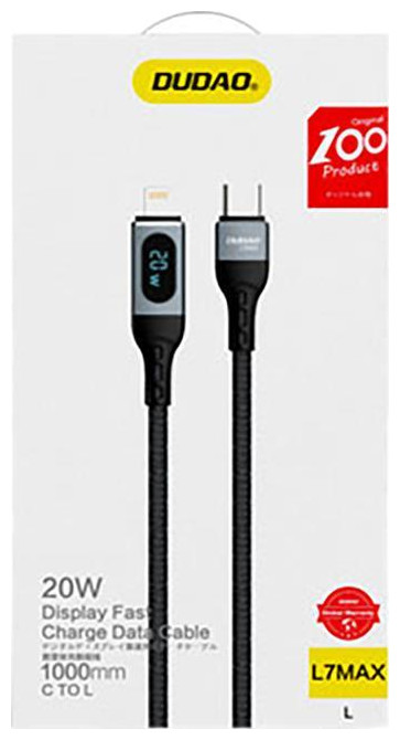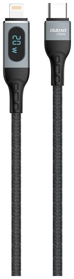 Dudao kabel USB Typ C - Lightning ze wsparciem protokołu Power Delivery 20W czarny (L7MaxL)Kabel Dudao L7MaxL dopasuje swoją moc do Twojego urządzenia. Zapewni efektywne zasilanie smartfona oraz tabletu – może ładować z mocą do 20 W. Ma wbudowane porty USB Typ C – Lightning, dzięki czemu jest kompatybilny z urządzeniami Apple. Wspiera standard Power Delivery, dlatego gwarantuje szybkie i bezpieczne ładowanie. Posiada wbudowany wyświetlacz wyświetlacz cyfrowy, który pokazuje szacunkową, aktualną moc ładowania.Specyfikacja:Marka: Dudao