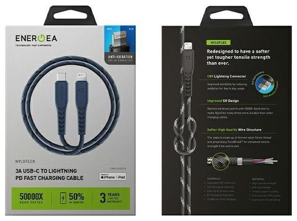 ENERGEA Nyloflex USB-C - Lightning C94 καλώδιο MFI 1,5 m μπλε/μπλε 6957879423192 6957879423192 Energea Nyloflex C94 USB-C - Καλώδιο Lightning Το καλώδιο Nyloflex είναι το πιο πρόσφατο προϊόν που προσφέρεται από την παγκοσμίου φήμης μάρκα GSM. Αυτό το καλώδιο διακρίνεται για την ακριβή κατασκευή του, η οποία εξασφαλίζει μακροχρόνια χρήση και αξιοπιστία. Το καλώδιο κατασκευάζεται χρησιμοποιώντας αγωγούς χαλκού υψηλότερης ποιότητας και μια ισχυρή νάιλον πλεξούδα, που το καθιστά εύκαμπτο και ανθεκτικό στη φθορά. Η κατασκευή του καλωδίου έχει ενισχυθεί ειδικά για να αυξήσει την αντοχή του καλωδίου όσον αφορά την αντοχή στην κάμψη. Χάρη στην ευελιξία του καλωδίου, μπορεί εύκολα να μεταφερθεί και να αποθηκευτεί χωρίς φόβο για ζημιά. Το καλώδιο Nyloflex διατίθεται σε πολλά κλασικά χρώματα, πράγμα που σημαίνει ότι ο χρήστης σίγουρα θα βρει αυτό που ταιριάζει καλύτερα στις προτιμήσεις του. Η άκρη με τον σύνδεσμο Lightning καλύπτεται με ειδική επίστρωση με ρόδιο, η οποία αυξάνει την αντοχή του έναντι της φθοράς. Το ρόδιο άκρο είναι πιο ανθεκτικό από ένα τυπικό επίχρυσο άκρο, εγγυάται υψηλότερη ηλεκτρική αγωγιμότητα και είναι ανθεκτικό στην οξείδωση. Το καλώδιο είναι συμβατό με την τεχνολογία Power Delivery (PD) και σας επιτρέπει να φορτίζετε γρήγορα τη συσκευή χωρίς τον κίνδυνο να καταστρέψετε την μπαταρία της. Η υψηλή ισχύς του καλωδίου και η δυνατότητα υποστήριξης του πρωτοκόλλου PD σας επιτρέπουν να φορτίζετε γρήγορα το iPhone σας - 30 λεπτά είναι αρκετά για να φορτίσετε την μπαταρία του iPhone σας από το μηδέν έως το 50%! Το καλώδιο Nyloflex έχει σχεδιαστεί ειδικά για να τροφοδοτεί συσκευές Apple. Εξοπλισμένο με υποδοχή Lightning στο ένα άκρο και υποδοχή USB-C στο άλλο άκρο, επιτρέπει τη γρήγορη και χωρίς προβλήματα φόρτιση και συγχρονισμό δεδομένων. Η υποδοχή Lightning είναι συμβατή με συσκευές Apple όπως iPhone, iPad και iPod. Αυτό το προϊόν έχει πιστοποίηση MFI (Made for iPhone/iPad), που σημαίνει ότι έχει εγκριθεί επίσημα από την Apple και πληροί τα αυστηρά πρότυπα ποιότητας της. Η πιστοποίηση MFI διασφαλίζει ότι το καλώδιο είναι ασφαλές στη χρήση και δεν θα προκαλέσει προβλήματα συμβατότητας ή ζημιά στις συνδεδεμένες συσκευές. Τύπος σύνδεσης τεχνικών δεδομένων USB-C - Lightning Material Nylon Μήκος 1,5m Γρήγορη φόρτιση Ναι Ταχύτητα μεταφοράς δεδομένων 480Mbps Ισχύς εξόδου 3A Χρώμα μπλε Συμβατότητα Συσκευές Apple iPhone / iPad / iPods{Plugin Type} Απλή προσθήκη . {Plugin Type} Απλή προσθήκη . {Plugin Type} Απλή προσθήκη . {Plugin Type} Απλή προσθήκη . {Plugin Type} Απλή προσθήκη . {Plugin Type} Απλή προσθήκη . {Plugin Type} Απλή προσθήκη . {Plugin Type} Απλή προσθήκη . {Μήκος καλωδίου} 1,5 m . {Μήκος καλωδίου} 1,5 m . {Μήκος καλωδίου} 1,5 m . {Μήκος καλωδίου} 1,5 m . {Μήκος καλωδίου} 1,5 m . {Μήκος καλωδίου} 1,5 m . {Μήκος καλωδίου} 1,5 m . {Μήκος καλωδίου} 1,5 m . {Connector 1} USB-C . {Connector 1} USB-C . {Connector 1} USB-C . {Connector 1} USB-C . {Connector 1} USB-C . {Connector 1} USB-C . {Connector 1} USB-C . {Connector 1} USB-C . {Τύπος καλωδίου} Αρσενικό - Αρσενικό . {Τύπος καλωδίου} Αρσενικό - Αρσενικό . {Τύπος καλωδίου} Αρσενικό - Αρσενικό . {Τύπος καλωδίου} Αρσενικό - Αρσενικό . {Τύπος καλωδίου} Αρσενικό - Αρσενικό . {Τύπος καλωδίου} Αρσενικό - Αρσενικό . {Τύπος καλωδίου} Αρσενικό - Αρσενικό . {Τύπος καλωδίου} Αρσενικό - Αρσενικό . {Braid} Με πλεξούδα. {Braid} Με πλεξούδα. {Braid} Με πλεξούδα. {Braid} Με πλεξούδα. {Braid} Με πλεξούδα. {Opl