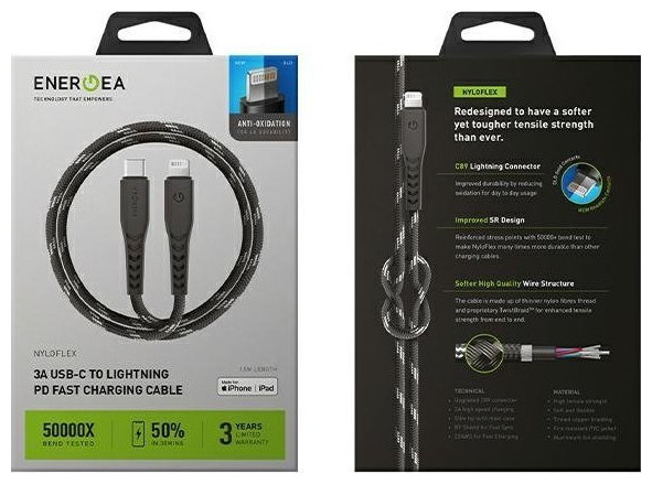 ENERGEA Nyloflex USB-C - Lightning C94 καλώδιο MFI 3m μαύρο/μαύρο 6957879424014 6957879424014 Energea Nyloflex C94 USB-C - Καλώδιο Lightning Το καλώδιο Nyloflex είναι το πιο πρόσφατο προϊόν που προσφέρεται από την παγκοσμίου φήμης και σεβαστή αξεσουάρ της GSM. Αυτό το καλώδιο διακρίνεται για την ακριβή κατασκευή του, η οποία εξασφαλίζει μακροχρόνια χρήση και αξιοπιστία. Το καλώδιο κατασκευάζεται χρησιμοποιώντας αγωγούς χαλκού υψηλότερης ποιότητας και μια ισχυρή νάιλον πλεξούδα, που το καθιστά εύκαμπτο και ανθεκτικό στη φθορά. Η κατασκευή του καλωδίου έχει ενισχυθεί ειδικά για να αυξήσει την αντοχή του καλωδίου όσον αφορά την αντοχή στην κάμψη. Χάρη στην ευελιξία του καλωδίου, μπορεί εύκολα να μεταφερθεί και να αποθηκευτεί χωρίς φόβο για ζημιά. Το καλώδιο Nyloflex διατίθεται σε πολλά κλασικά χρώματα, πράγμα που σημαίνει ότι ο χρήστης σίγουρα θα βρει αυτό που ταιριάζει καλύτερα στις προτιμήσεις του. Η άκρη με τον σύνδεσμο Lightning καλύπτεται με ειδική επίστρωση με ρόδιο, η οποία αυξάνει την αντοχή του έναντι της φθοράς. Το ρόδιο άκρο είναι πιο ανθεκτικό από ένα τυπικό επίχρυσο άκρο, εγγυάται υψηλότερη ηλεκτρική αγωγιμότητα και είναι ανθεκτικό στην οξείδωση. Το καλώδιο είναι συμβατό με την τεχνολογία Power Delivery (PD) και σας επιτρέπει να φορτίζετε γρήγορα τη συσκευή χωρίς τον κίνδυνο να καταστρέψετε την μπαταρία της. Η υψηλή ισχύς του καλωδίου και η δυνατότητα υποστήριξης του πρωτοκόλλου PD σας επιτρέπουν να φορτίζετε γρήγορα το iPhone σας - 30 λεπτά είναι αρκετά για να φορτίσετε την μπαταρία του iPhone σας από το μηδέν έως το 50%! Το καλώδιο Nyloflex έχει σχεδιαστεί ειδικά για να τροφοδοτεί συσκευές Apple. Εξοπλισμένο με υποδοχή Lightning στο ένα άκρο και υποδοχή USB-C στο άλλο άκρο, επιτρέπει τη γρήγορη και χωρίς προβλήματα φόρτιση και συγχρονισμό δεδομένων. Η υποδοχή Lightning είναι συμβατή με συσκευές Apple όπως iPhone, iPad και iPod. Αυτό το προϊόν έχει πιστοποίηση MFI (Made for iPhone/iPad), που σημαίνει ότι έχει εγκριθεί επίσημα από την Apple και πληροί τα αυστηρά πρότυπα ποιότητας της. Η πιστοποίηση MFI διασφαλίζει ότι το καλώδιο είναι ασφαλές στη χρήση και δεν θα προκαλέσει προβλήματα συμβατότητας ή ζημιά στις συνδεδεμένες συσκευές. Τύπος σύνδεσης τεχνικών δεδομένων USB-C - Lightning Material Nylon Μήκος 3m Γρήγορη φόρτιση Ναι Ταχύτητα μεταφοράς δεδομένων 480Mbps Ισχύς εξόδου 3A Έγχρωμο Μαύρο Συσκευές Apple iPhone / iPad / iPods{Plugin Type} Απλή προσθήκη . {Plugin Type} Απλή προσθήκη . {Plugin Type} Απλή προσθήκη . {Plugin Type} Απλή προσθήκη . {Plugin Type} Απλή προσθήκη . {Plugin Type} Απλή προσθήκη . {Plugin Type} Απλή προσθήκη . {Plugin Type} Απλή προσθήκη . {Μήκος καλωδίου} 3 m . {Μήκος καλωδίου} 3 m . {Μήκος καλωδίου} 3 m . {Μήκος καλωδίου} 3 m . {Μήκος καλωδίου} 3 m . {Μήκος καλωδίου} 3 m . {Μήκος καλωδίου} 3 m . {Μήκος καλωδίου} 3 m . {Χρώμα} Μαύρο. {Χρώμα} Μαύρο. {Χρώμα} Μαύρο. {Χρώμα} Μαύρο. {Χρώμα} Μαύρο. {Χρώμα} Μαύρο. {Χρώμα} Μαύρο. {Χρώμα} Μαύρο. {Σύνδεση 1} USB-C . {Σύνδεση 1} USB-C . {Connector 1} USB-C . {Connector 1} USB-C . {Connector 1} USB-C . {Connector 1} USB-C . {Connector 1} USB-C . {Connector 1} USB-C . {Τύπος καλωδίου} Αρσενικό - Αρσενικό . {Τύπος καλωδίου} Αρσενικό - Αρσενικό . {Τύπος καλωδίου} Αρσενικό - Αρσενικό . {Τύπος καλωδίου} Αρσενικό - Αρσενικό . {Τύπος καλωδίου} Αρσενικό - Αρσενικό . {Τύπος καλωδίου} Αρσενικό - Αρσενικό . {Τύπος καλωδίου} Αρσενικό - Αρσενικό . {Τύπος καλωδίου}Μ