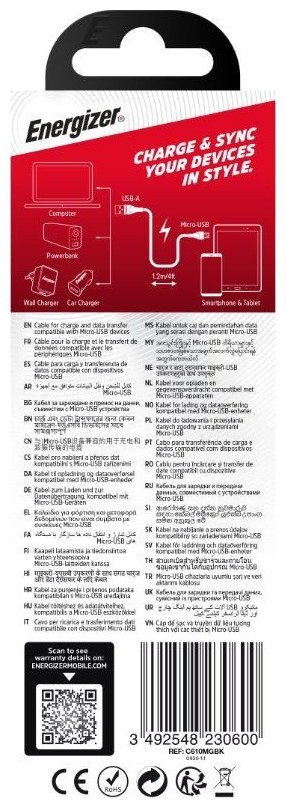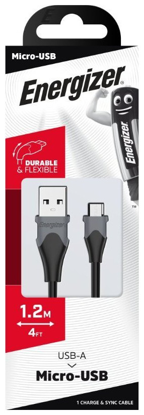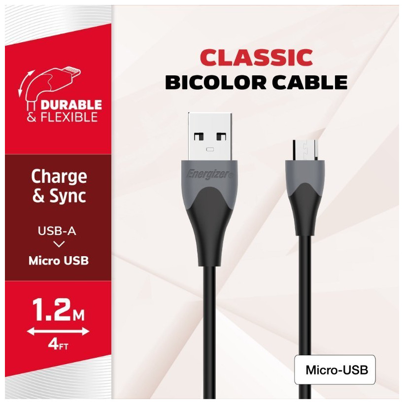 Energizer Classic - Kabel połączeniowy USB-A do Micro USB 1.2m (Czarny) 3492548230600 C610MGBK Kabel Energizer Classic do ładowania i transmisji danych o długości 120 cm, wyposażony w złącze USB-A na Micro USB. Kabel jest bardzo elastyczny, wytrzymały i odporny na splątanie. Przewód umożliwia przesyłanie danych z prędkością 480 Mb/s. Cechy produktu: · Kabel USB-A na Micro USB · Maksymalna odporność na skręcanie · Natężenie: 2.4A · Transfer danych: 480 Mbps · Długość kabla: 1.2m · Dwukolorowe · Waga: 50g