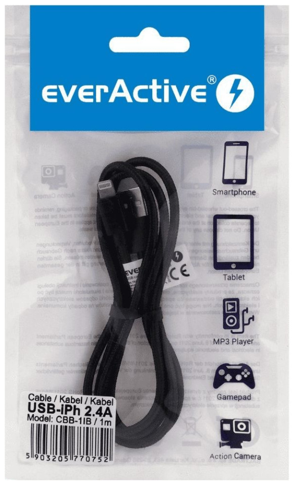 EverActive USB-A - Καλώδιο Lightning 1 m μαύρο (CBB-1IB)EverActive USB-A - Καλώδιο Lightning 1 m μαύρο (CBB-1IB)