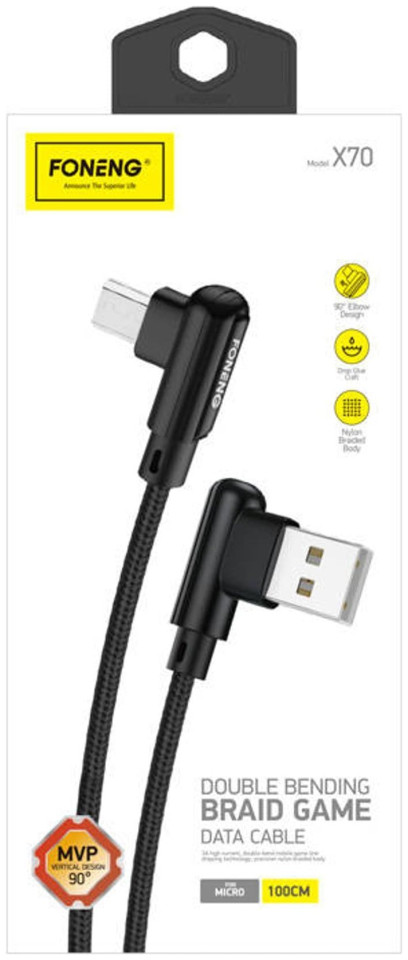 Εξασφαλίστε μέγιστη άνεση κατά τη διάρκεια του συναρπαστικού παιχνιδιού. Το καλώδιο Foneng X70 διακρίνεται από ειδικά καμπύλες άκρες υπό γωνία 90°, χάρη στις οποίες το καλώδιο δεν θα σας ενοχλεί όταν χρησιμοποιείτε το τηλέφωνο. Υποστηρίζει γρήγορη φόρτιση στα 3 A και είναι κατασκευασμένο από υλικά υψηλής ποιότητας, τα οποία διασφαλίζουν ότι το καλώδιο θα σας εξυπηρετεί καλά για μεγάλο χρονικό διάστημα. Παίζετε συχνά παιχνίδια στο τηλέφωνό σας; Το μοντέλο X70 σίγουρα θα ανταποκριθεί στις προσδοκίες σας! Η κυρτή υποδοχή microUSB 90 μοιρών θα σας επιτρέψει να χρησιμοποιείτε άνετα το smartphone σας κατά τη φόρτιση. Δεν χρειάζεται πλέον να διακόψετε το έντονο gameplay! Επιπλέον, το καλώδιο προσφέρει φόρτιση με ρεύμα 3 A - έτσι μπορείτε να είστε σίγουροι ότι η φόρτιση δεν θα διαρκέσει πολύ. Ο προσεκτικά μελετημένος σχεδιασμός σε συνδυασμό με υλικά υψηλής ποιότητας θα σας επιτρέψει να απολαύσετε τη λειτουργικότητα του καλωδίου για μεγάλο χρονικό διάστημα. φορά. Η νάιλον πλεξούδα προστατεύει αποτελεσματικά το καλώδιο από ζημιές και αποτρέπει το μπέρδεμά του. Το μοντέλο X70 είναι επίσης εξοπλισμένο με ένα έξυπνο τσιπ που είναι υπεύθυνο για την ασφάλεια κατά τη φόρτιση. Κατασκευαστής Foneng Μοντέλο X70 Χρώμα Μαύρο ρεύμα 3 A Υλικό TPE + νάιλον + κράμα αλουμινίου Μήκος 1 m{Χρώμα} Μαύρο. {Χρώμα} Μαύρο. {Χρώμα} Μαύρο. {Χρώμα} Μαύρο. {Χρώμα} Μαύρο. {Τύπος βύσματος} Γωνιακό βύσμα . {Τύπος βύσματος} Γωνιακό βύσμα . {Τύπος βύσματος} Γωνιακό βύσμα . {Τύπος βύσματος} Γωνιακό βύσμα . {Τύπος βύσματος} Γωνιακό βύσμα . {Τύπος καλωδίου} Αρσενικό - Αρσενικό . {Τύπος καλωδίου} Αρσενικό - Αρσενικό . {Τύπος καλωδίου} Αρσενικό - Αρσενικό . {Τύπος καλωδίου} Αρσενικό - Αρσενικό . {Τύπος καλωδίου} Αρσενικό - Αρσενικό . {Braid} Με πλεξούδα. {Braid} Με πλεξούδα. {Braid} Με πλεξούδα. {Braid} Με πλεξούδα. {Braid} Με πλεξούδα. {Connector 1} USB-A . {Connector 1} USB-A . {Connector 1} USB-A . {Connector 1} USB-A . {Connector 1} USB-A . {Standard} Δεν υπάρχουν δεδομένα . {Standard} Δεν υπάρχουν δεδομένα . {Standard} Δεν υπάρχουν δεδομένα . {Standard} Δεν υπάρχουν δεδομένα . {Standard} Δεν υπάρχουν δεδομένα . {Connector 2} microUSB . {Connector 2} microUSB . {Connector 2} microUSB . {Connector 2} microUSB . {Connector 2} microUSB . {Μήκος καλωδίου} 1 m . {Μήκος καλωδίου} 1 m . {Μήκος καλωδίου} 1 m . {Μήκος καλωδίου} 1 m . {Μήκος καλωδίου} 1 m