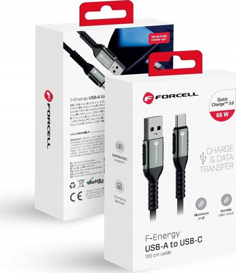 Καλώδιο USB ForCell FORCELL F-ENERGY C256 καλώδιο USB A σε Τύπο C QC3.0 3A 66W Cafule 1,2 m μαύρο