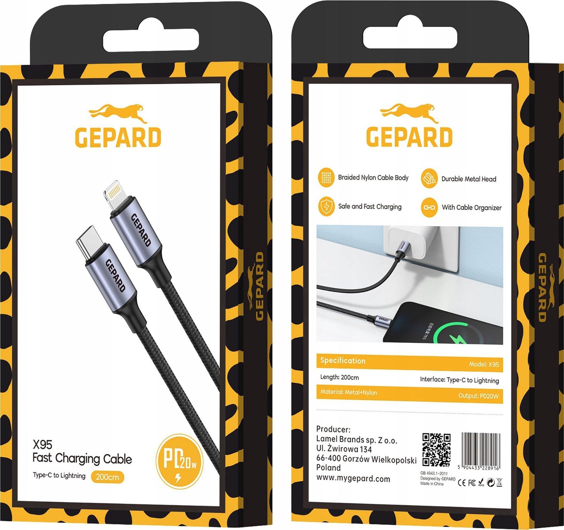 Καλώδιο USB Gepard Καλώδιο GEPARD USB-C - Lightning PD20W μεταλλική κεφαλή 2m