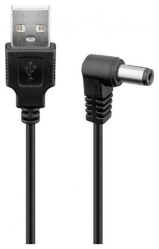 {Μήκος καλωδίου} 1,5 m . {Χρώμα} Μαύρο. {Τύπος βύσματος} Γωνιακό βύσμα . {Τύπος καλωδίου} Αρσενικό - Αρσενικό . {Connector 1} USB-A . {Πλεξούδα} Χωρίς πλέξη. {Standard} 2.0 . {Connector 2} DC 5,5 x 2,1 mm