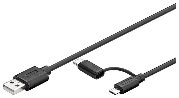 Καλώδιο USB Goobay USB-A - microUSB + USB-C 1 m Μαύρο (71892)