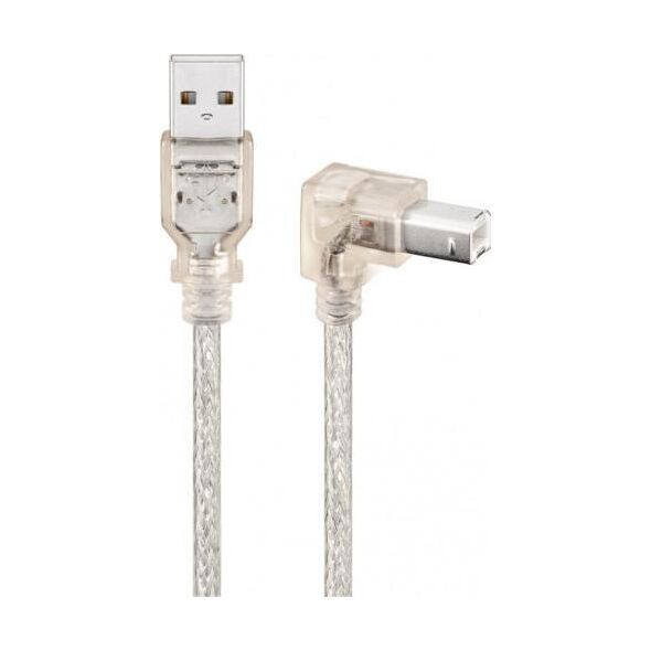 {Μήκος καλωδίου} 0,5 m . {Τύπος βύσματος} Γωνιακό βύσμα . {Τύπος καλωδίου} Αρσενικό - Αρσενικό . {Connector 1} USB-A . {Πλεξούδα} Χωρίς πλέξη. {Standard} 2.0 . {Connector 2} USB-B . {Χρώμα} Διαφανές