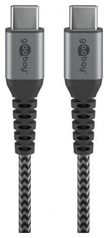 Goobay USB-C™ auf USB-C™ Textilkabel mit Metallsteckern (space grau/silber) 1 m, 1 m, Schwarz-Grau - elegantes und extra-robustes Verbindungskabel für Geräte mit USB-C™ Anschl (49302)