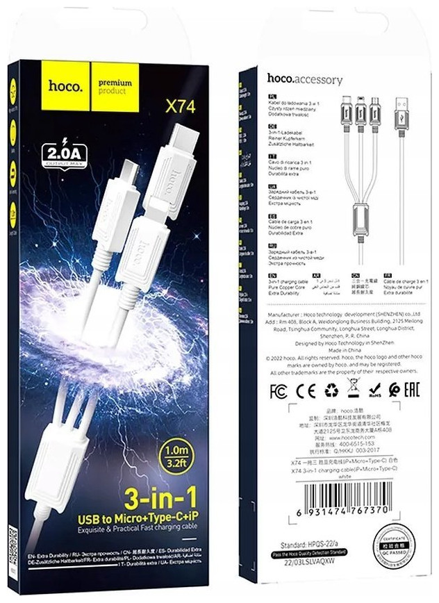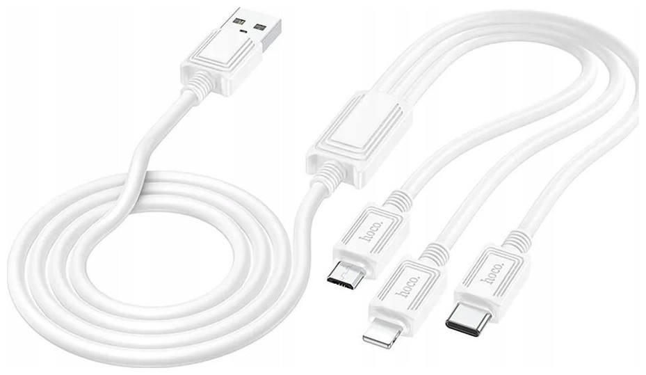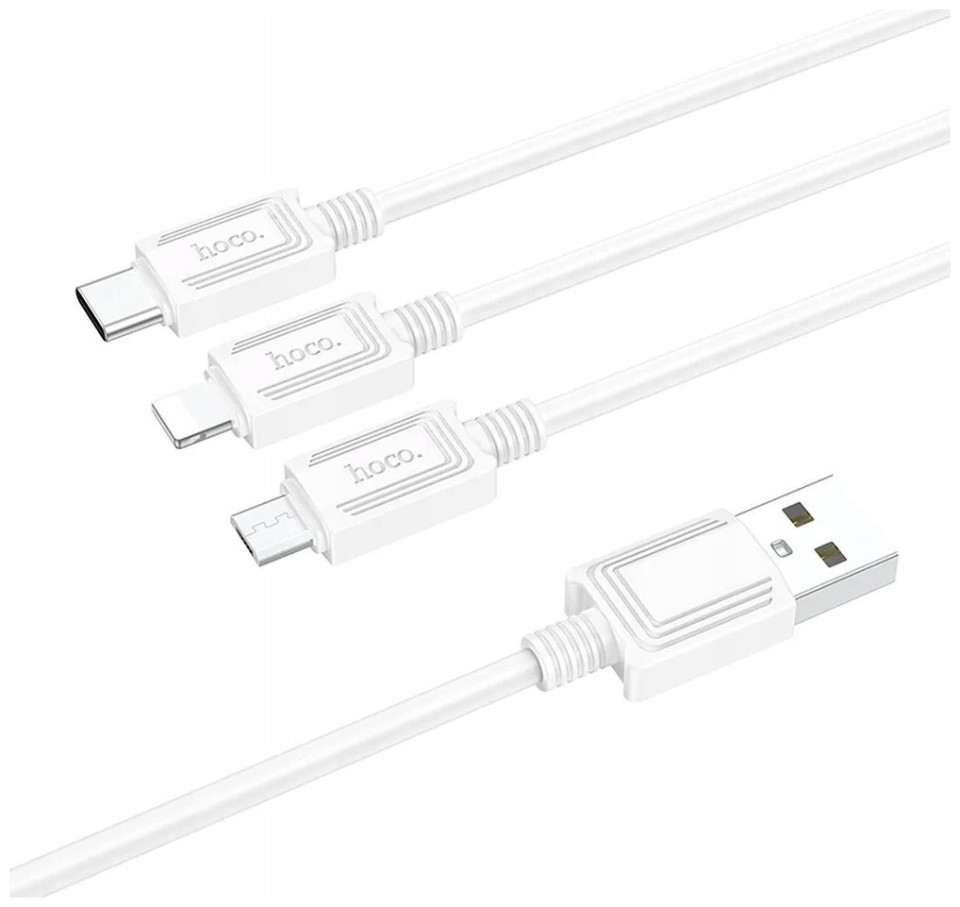 Καλώδιο USB Hoco HOCO καλώδιο 3 σε 1 USB A σε Lightning / Micro USB / Τύπος C 2A X74 1 m λευκό