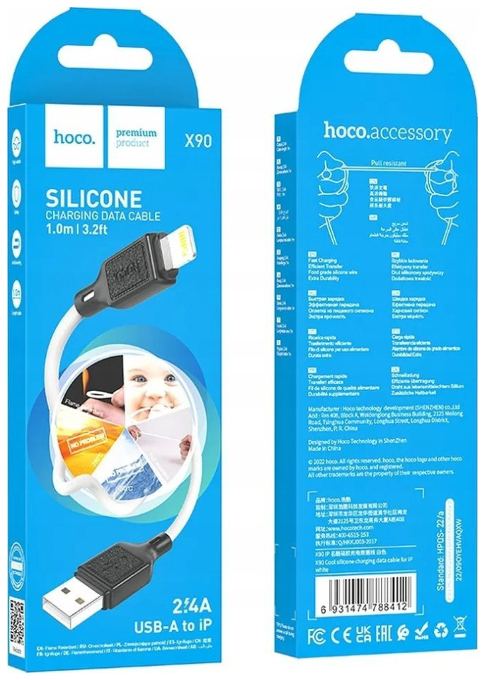 Καλώδιο USB Hoco HOCO καλώδιο USB A σε Lightning 2,4A X90 1 m λευκό