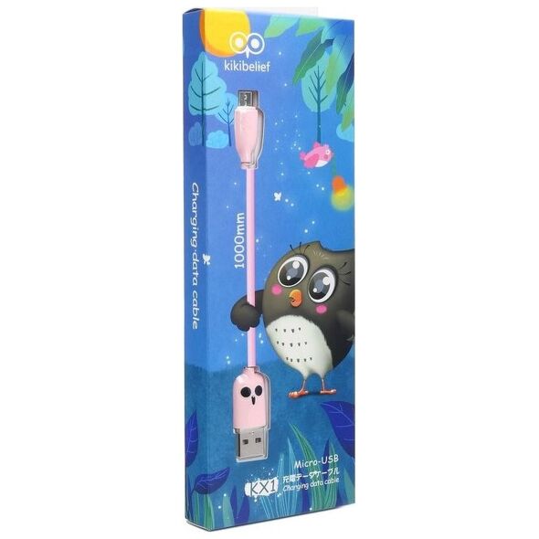 Καλώδιο φόρτισης και μετάδοσης δεδομένων Universal Kikibelief με τη χαρακτηριστική διακόσμηση κουκουβάγιας της μάρκας. Το καλώδιο είναι κατασκευασμένο από αντιολισθητικό, ματ υλικό. Ο κατάλληλος σχεδιασμός σημαίνει ότι δεν μπλέκεται κατά τη χρήση και το μικρό του μέγεθος σας επιτρέπει να το έχετε πάντα μαζί σας. Μήκος: 1m Υποδοχές: USB-Micro USB Μέγ. ρεύμα: 2,4A Καλώδιο: (43/0,08)*2C+(16/0,08)*2C{Plugin Type} Απλή προσθήκη . {Τύπος καλωδίου} Αρσενικό - Αρσενικό . {Connector 1} USB-A . {Πλεξούδα} Χωρίς πλέξη. {Color}Ροζ . {Standard} 2.0 . {Connector 2} microUSB . {Μήκος καλωδίου} 1 m