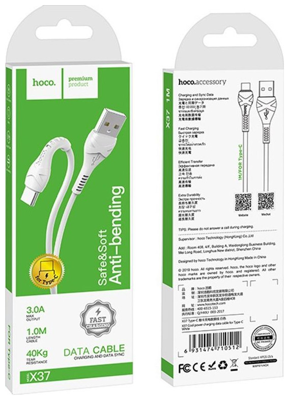 Καλώδιο USB Hoco USB-A - USB-C 1 m Λευκό (6931474710512)