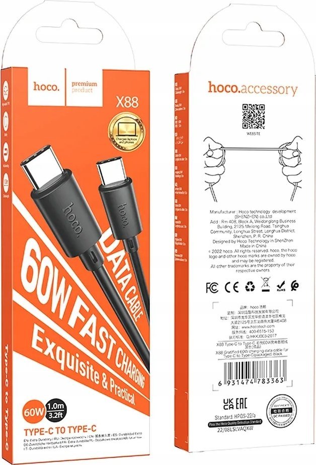 Kabel USB Hoco USB-C - USB-C 1 m Czarny (HOCOACC10)