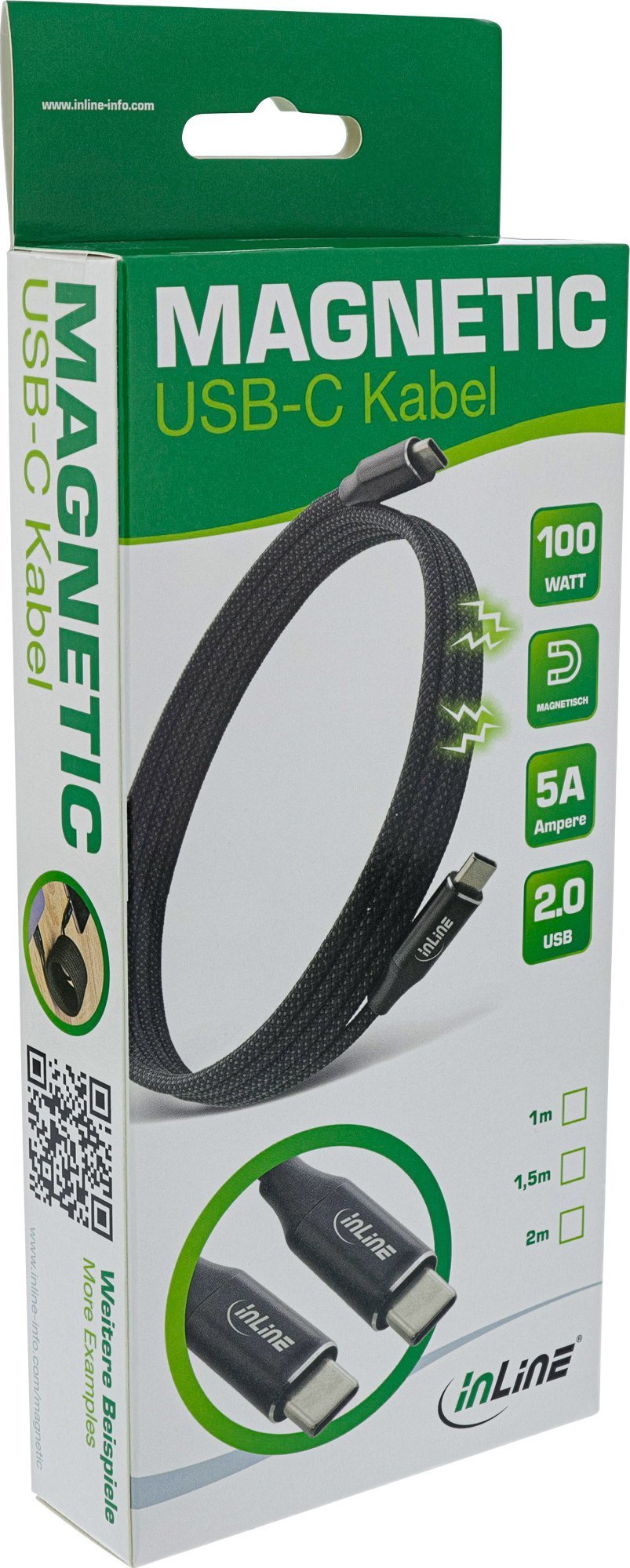 Καλώδιο USB InLine InLine® Μαγνητικό καλώδιο USB-C, USB-C αρσενικό/αρσενικό, 100W, μαύρο, 1m