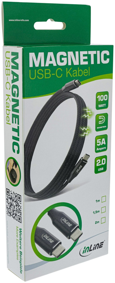 Καλώδιο USB InLine InLine® Μαγνητικό καλώδιο USB-C, USB-C αρσενικό/αρσενικό, 100W, μαύρο, 2μ