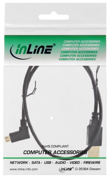 Καλώδιο InLine Micro USB 2.0 USB Type A αρσενικό - Micro-B αρσενικό γωνιακό μαύρο 0,5 m (50 cm) Καλώδιο Micro-USB από τη γερμανική μάρκα InLine είναι ο μικρότερος τύπος βύσματος USB για να συναντά όλο και μικρότερες συσκευές όπως smartphone, κινητά τηλέφωνα, PDA , ψηφιακές φωτογραφικές μηχανές κ.λπ. Υπάρχουν δύο τύποι βυσμάτων: βύσμα Micro-A (ορθογώνια σχεδίαση, πλευρά υποδοχής) και Micro-B (τραπεζοειδής σχεδιασμός, πλευρά συσκευής). Το βύσμα Micro-B είναι ένα τυπικό βύσμα για φορητές συσκευές Ένα επιπλέον πλεονέκτημα των καλωδίων USB InLine που διατίθενται στο κατάστημά μας είναι το γεγονός του γερμανικού ποιοτικού ελέγχου. Κάθε προϊόν ελέγχεται πριν συσκευαστεί, επομένως μπορούμε να είμαστε σίγουροι ότι αγοράζουμε ένα καλώδιο USB που λειτουργεί.{Μήκος καλωδίου} 0,5 m . {Μήκος καλωδίου} 0,5 m . {Χρώμα} Μαύρο. {Χρώμα} Μαύρο. {Τύπος βύσματος} Γωνιακό βύσμα . {Τύπος βύσματος} Γωνιακό βύσμα . {Τύπος καλωδίου} Αρσενικό - Αρσενικό . {Τύπος καλωδίου} Αρσενικό - Αρσενικό . {Connector 1} USB-A . {Connector 1} USB-A . {Πλεξούδα} Χωρίς πλέξη. {Πλεξούδα} Χωρίς πλέξη. {Standard} 2.0 . {Standard} 2.0 . {Connector 2} microUSB . {Connector 2} microUSB
