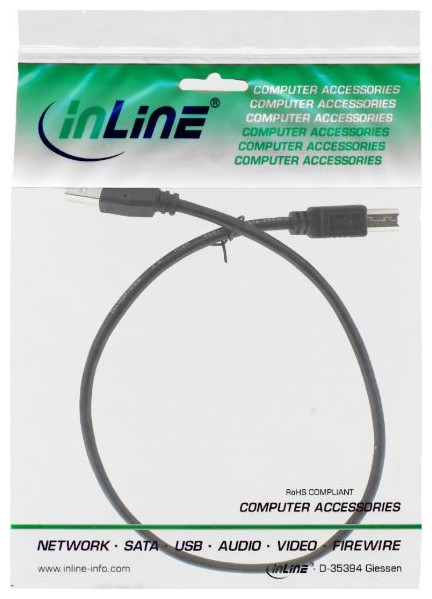 Καλώδιο USB InLine USB-A - USB-B 0.3 m Μαύρο (34503X)
