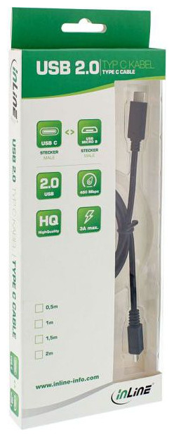 Καλώδιο USB 2.0 InLine, αρσενικό τύπου C σε Micro-B, μαύρο, 0,5 m (50 cm) Το καλώδιο USB 2.0 του γερμανικού κατασκευαστή InLine είναι κατάλληλο για μεταφορά δεδομένων σε ταχύτητες έως και 480 Mb/s καλώδιο με θωρακισμένους ομοαξονικούς πυρήνες, που μπορούν να συνδεθούν σε σκληρούς δίσκους USB, κάρτες βίντεο USB κ.λπ. με υποδοχή USB Micro-B, για σύνδεση σε κάρτα υποδοχής με θύρα USB Γ. Μεγάλο πλεονέκτημα των καλωδίων InLine σε USB στο κατάστημά μας είναι το γεγονός του γερμανικού ποιοτικού ελέγχου. Κάθε καλώδιο δοκιμάζεται πριν συσκευαστεί, ώστε να μπορούμε να είμαστε σίγουροι ότι θα λειτουργήσει μόλις συνδεθεί. ρεύμα φόρτισης , καλώδιο έως 2 m: 0,5 Ampere{Plugin Type} Απλή προσθήκη . {Plugin Type} Απλή προσθήκη . {Μήκος καλωδίου} 0,5 m . {Μήκος καλωδίου} 0,5 m . {Χρώμα} Μαύρο. {Χρώμα} Μαύρο. {Connector 1} USB-C . {Connector 1} USB-C . {Τύπος καλωδίου} Αρσενικό - Αρσενικό . {Τύπος καλωδίου} Αρσενικό - Αρσενικό . {Πλεξούδα} Χωρίς πλέξη. {Πλεξούδα} Χωρίς πλέξη. {Standard} 2.0 . {Standard} 2.0 . {Connector 2} microUSB . {Connector 2} microUSB