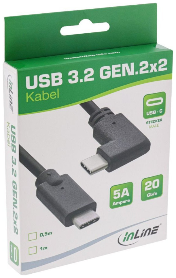 InLine 35707W. Μήκος καλωδίου: 0,3 m, Υποδοχή 1: USB C, Υποδοχή 2: USB C, Έκδοση USB: USB 3.2 Gen 2 (3.1 Gen 2), Μέγιστος ρυθμός μεταφοράς δεδομένων: 20000 Mbit/s, Χρώμα προϊόντος: Μαύρο{Μήκος καλωδίου} 0,3 m . {Μήκος καλωδίου} 0,3 m . {Χρώμα} Μαύρο. {Χρώμα} Μαύρο. {Τύπος βύσματος} Γωνιακό βύσμα . {Τύπος βύσματος} Γωνιακό βύσμα . {Connector 1} USB-C . {Connector 1} USB-C . {Τύπος καλωδίου} Αρσενικό - Αρσενικό . {Τύπος καλωδίου} Αρσενικό - Αρσενικό . {Πλεξούδα} Χωρίς πλέξη. {Πλεξούδα} Χωρίς πλέξη. {Standard} 3.2. {Standard} 3.2. {Connector 2} USB-C . {Connector 2} USB-C