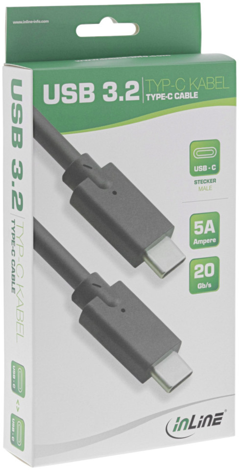 InLine 35704A. Długość kabla: 1,5 m, Złączka 1: USB C, Złączka 2: USB C, Wersja USB: USB 3.2 Gen 2 (3.1 Gen 2), Kolor produktu: Czarny