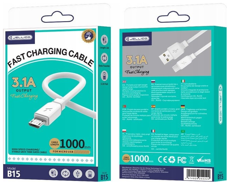 Καλώδιο USB Jellico JELLICO καλώδιο B15 Micro 3.1A 1M Λευκό
