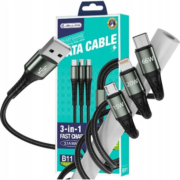 Jellico USB-A - USB-C + microUSB + καλώδιο Lightning 1,2 m Μαύρο (GSMA0236) 13771939 6974929201555