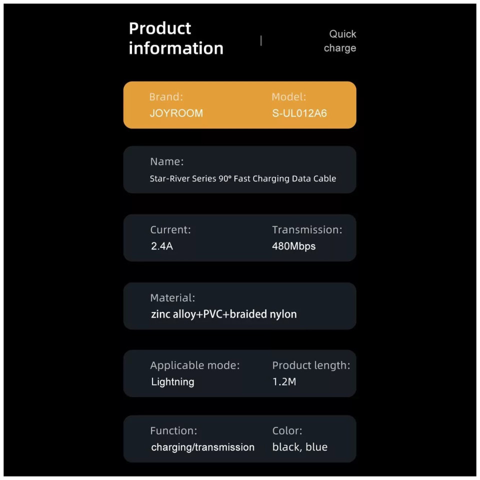 Najważniejsze zalety kabla Joyroom S-UL012A6: