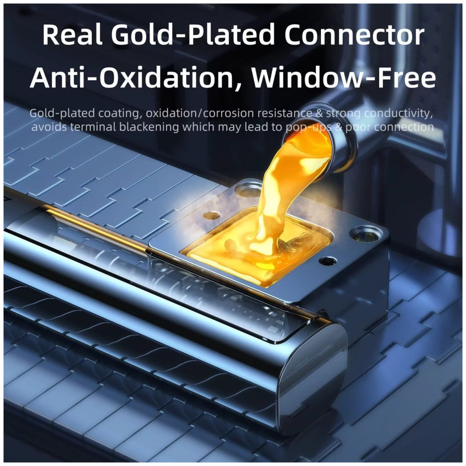 Pozłacane złącza sprawiają, że kabel jest odporny na korozję i zużycie.