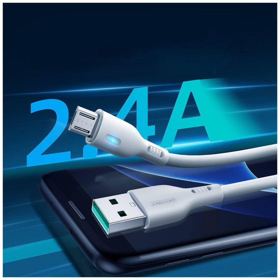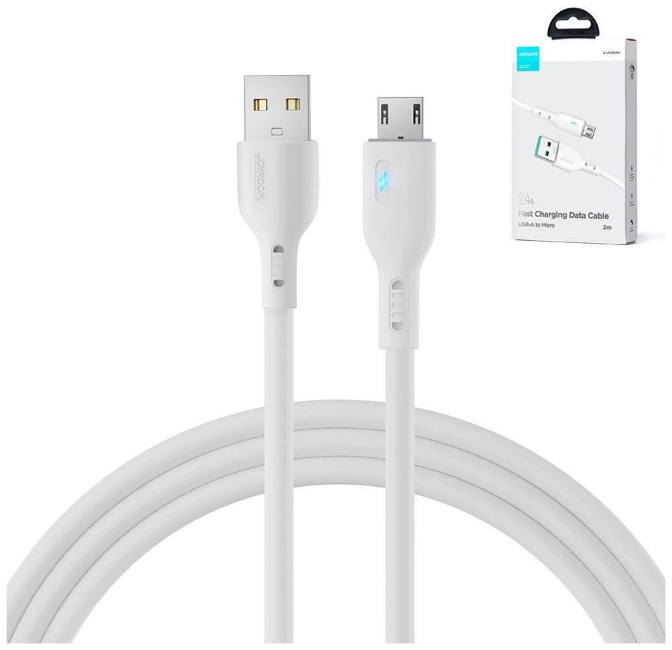 Kabel USB - micro USB o natężeniu 2.4 A i długości 2 m Joyroom S-UM018A13 - białyNiezawodny, elastyczny kabel USB - micro USB w dwóch długościach (1,2 m lub 2 m) – Joyroom wie, jak zadbać o Twoje potrzeby. Kabel S-UM018A13 zapewnia szybkie ładowanie i transmisję danych. Może zasilać kompatybilne urządzenia prądem o natężeniu do 2,4 A lub przesyłać dane z prędkością do 480 Mbps. Kabel został opleciony elastycznym TPE, który dba o to, aby wielokrotne zgięcia nie skończyły się złamaniem. Do tego we wtyczce znajdziesz delikatną diodę LED.Najważniejsze zalety kabla USB - micro USB Joyroom S-UM018A13:Automatycznie dopasuje napięcie i natężenie prądu do Twojego urządzenia. Kabel ma wbudowany inteligentny chipZapewnia szybkie ładowanie i szybki transfer danych. Może zasilać prądem o natężeniu do 2,4 A i przesyłać dane z prędkością 480 MbpsZostał dodatkowo wzmocniony, aby wytrzymać wielokrotne zgięcia. Kabel ma oplot z elastycznego materiału TPEZapewnia transfer danych bez zakłóceń. We wnętrzu kabla znajduje się grubszy rdzeń z cynowanej miedziWskaźnik ładowania nie zakłóci Twojego snu. Dioda LED jest delikatna, ale pozwala sprawdzić, czy rozpoczął się proces ładowaniaSpecyfikacja:Producent: JoyroomModel: S-UM018A13Złącza:USBmicro USBObsługiwane funkcje: ładowanie, transmisja danychNatężenie: do 2.4 ADługość kabla: 2 mPrędkość przesyłania danych: 480 MbpsMateriał: TPEKolor: biały