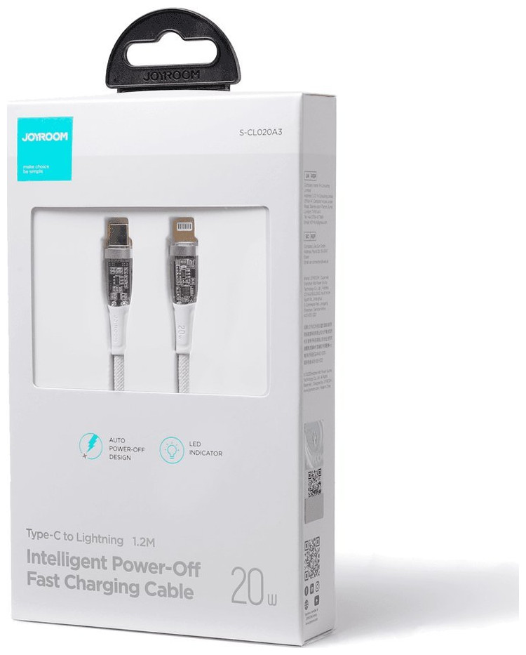 Joyroom kabel szybko ładujący z inteligentnym wyłącznikiem USB-C - Lightning 20W 1.2m biały (S-CL020A3)Obecnie warto zaopatrywać się w akcesoria, które są solidnie wykonane, zapewniają szybki transfer i stabilne ładowanie. Taki właśnie jest przewód USB-C - Lightning od Joyroom. Za jego pomocą możesz zasilać urządzenia prądem o mocy do 20W. Wzmocnienie wokół wtyczki Lightning zapewnia ochronę przed uszkodzeniami, które bardzo często powstają właśnie w tym miejscu. Produkt dodatkowo został wyposażony w inteligentny wyłącznik ładowania - nie musisz się martwić o straty energii, czy żywotność baterii w urządzeniu.Specyfikacja:Marka: Joyroom