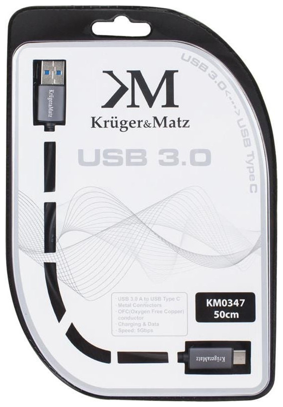 Καλώδιο USB Kruger&Matz USB-A - USB-C 1 m Μαύρο (KM0348)